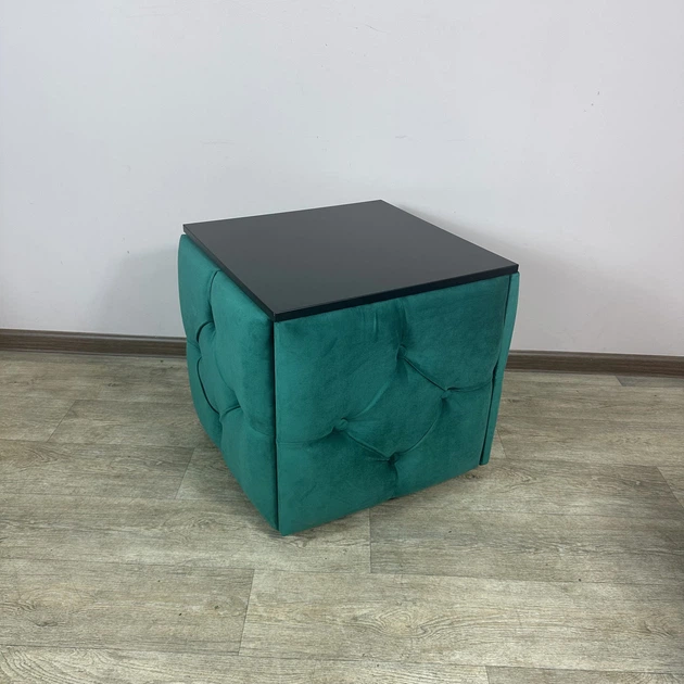 Пуф-трансформер 5 в 1 Mzavod Остін-1 зі столиком велюр смарагдовий/чорний (OSTIN-1-ST-VLR8-5-9003)