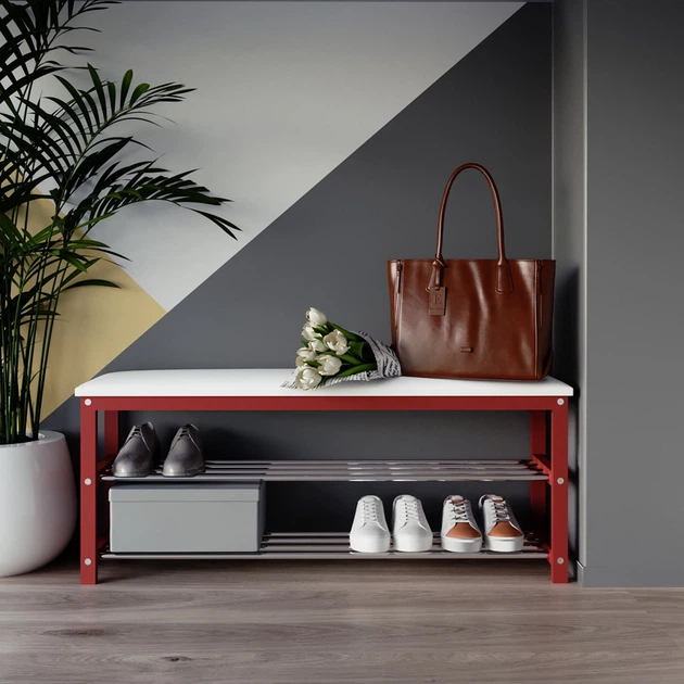 Банкетка дерев'яна Fenster NVD-13 Червона Екошкіра Біла