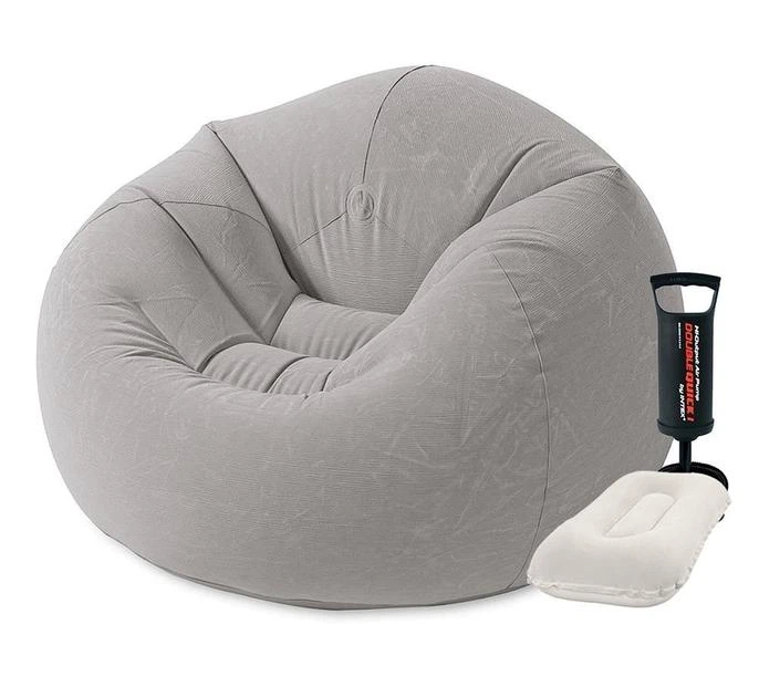 Крісло надувне для приміщення Intex 68579-2 з ПВХ 107х104х69 см з ручним насосом і подушкою до 100 кг Сіре (33-9-68579-2)