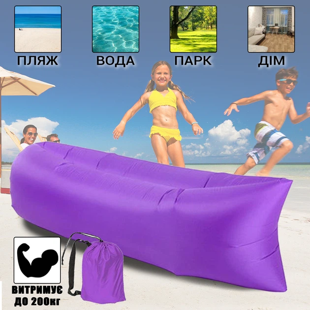 Надувний гамак-шезлонг повітряний мішок для відпочинку на природі та купання Resty Фіолетовий
