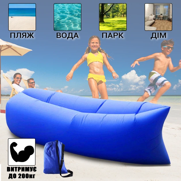 Надувний гамак-лежак Nyse SN-200 повітряний мішок для відпочинку на природі та будинки з міцного нейлону Синій
