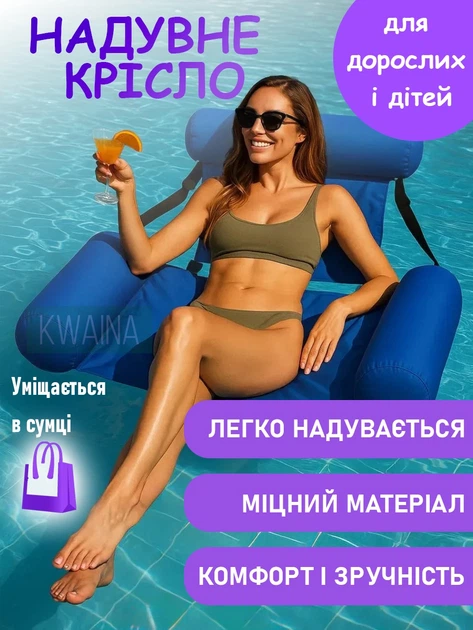 Надувне крісло зі спинкою складне для плавання та відпочинку на воді, матрац-крісло плаваючий стілець пляжний водний гамак,
