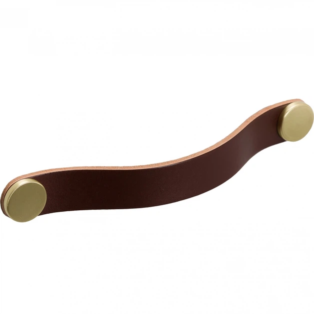 Меблева ручка VIEFE Flexa 182x27 коричнева шкіра з латунною кнопкою (0404.160.P.36.27)