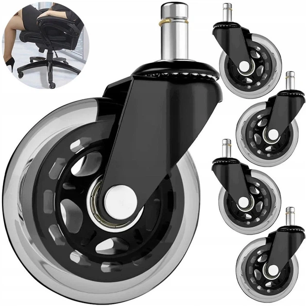 Безшумні роликові колеса для офісного крісла на підшипниках Malatec комплект 5 шт 12 х 3.5 х 1.1 см (22077)