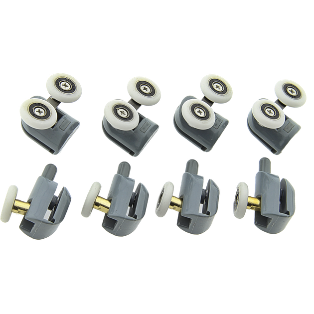 Ролики для душових кабін, комплект ( В-43 А+С ) Верхні подвійні, нижні одинарні сірі. 19 мм.