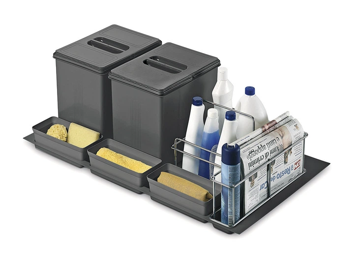 Система утилізації сміття фасад 900 Inoxa 97DA/902D ардезія (1 піддон, 2 відра 16 л, 3 лотка, 2 корзини)