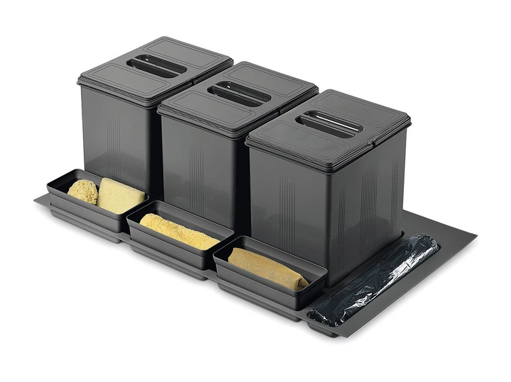 Система утилізації сміття фасад 900 Inoxa 97DA/903 ардезія (1 піддон, 3 відра 16 л, 3 лотка)