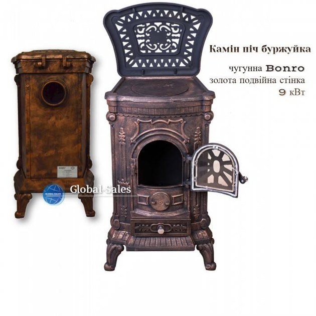 Камін піч буржуйка чавунна Bonro підвійна стінка 9 кВт