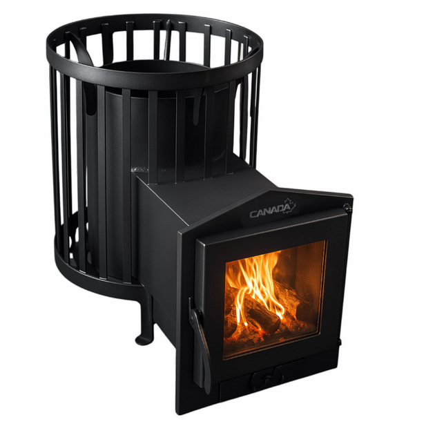 Піч для лазні та сауни «Canada» Бочка 15 м без виносу, зі слом на дверці