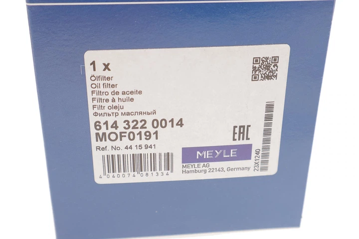 Фільтр масляний Renault Espace/Laguna/Trafic/Master/Opel Movano/Vivaro 2.2D/2.5D/3.0D 00- - 614 322 0014 MEYLE