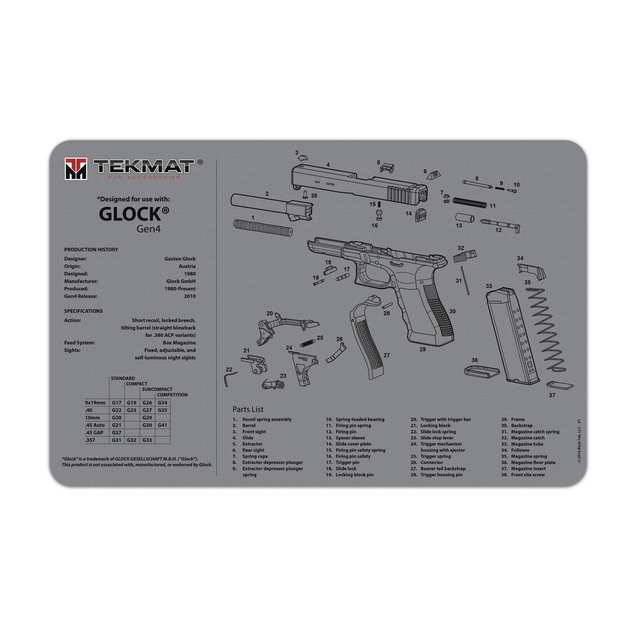 Килимок TekMat Ultra Premium Glock Gen4 для чищення зброї (117362)