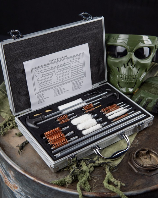 Універсальний набір для чищення зброї різних калібрів у кейсі