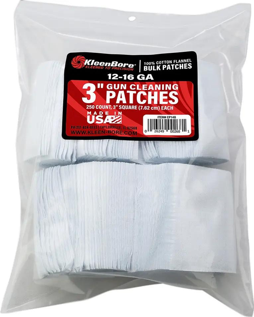 Патч для чищення KleenBore кал. 12-16. Бавовна. 250 шт