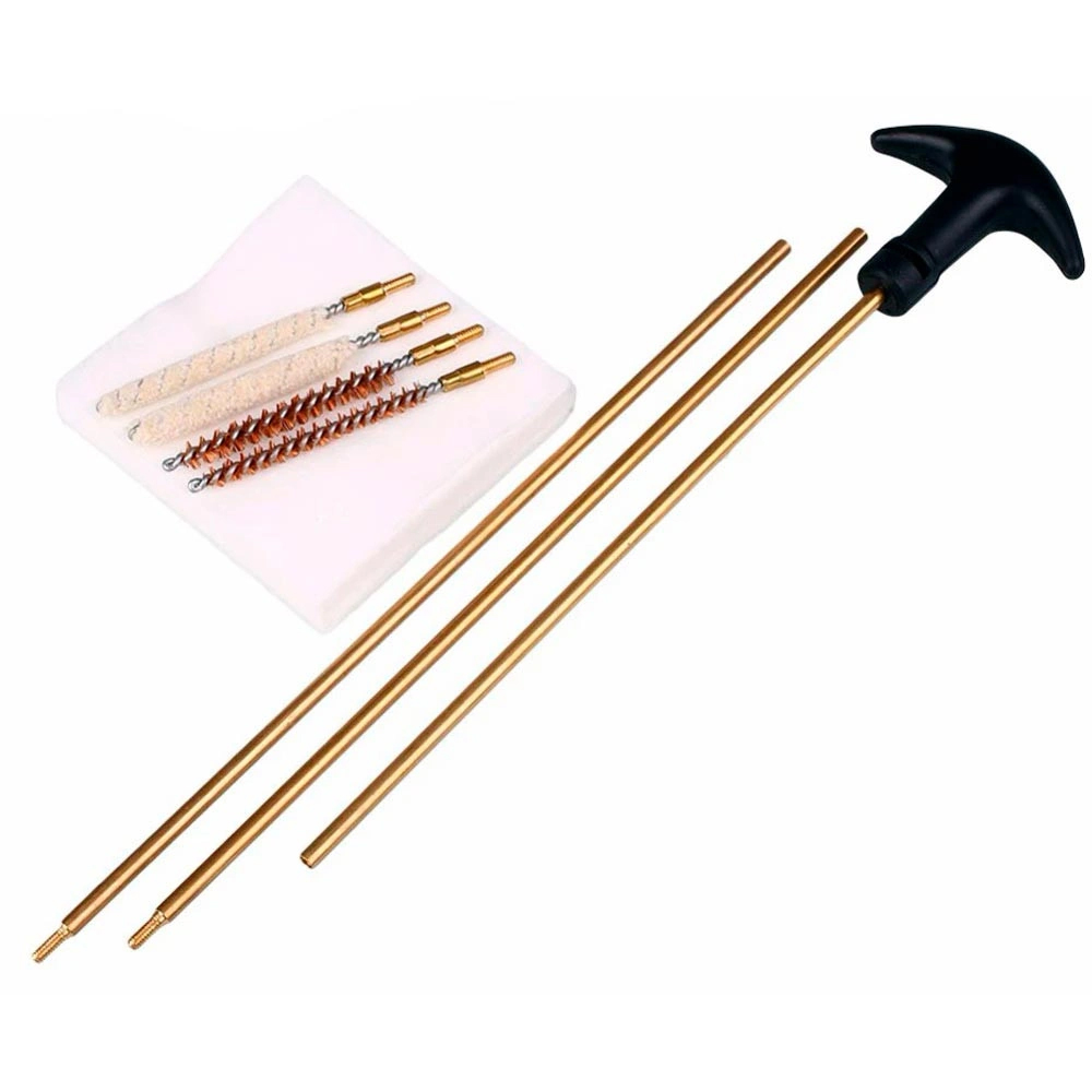 Набор для чистки канала ствола для калибров .22, 5.56, .223 с бронзовой щеткой, с оружейным маслом. Протяжка простая в использовании, имеет блистерную упаковку с инструкцией.