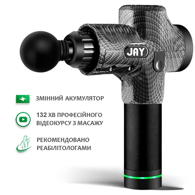 Професійний перкусійний масажер - масажний пістолет для тіла JAY Pro Карбоновий зі змінним акумулятором