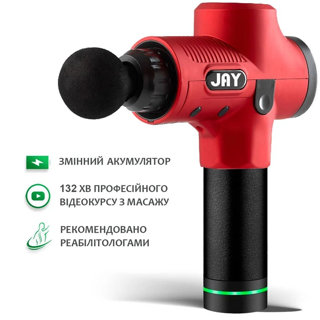 Професійний перкусійний масажер - масажний пістолет для тіла JAY Pro Червоний зі змінним акумулятором