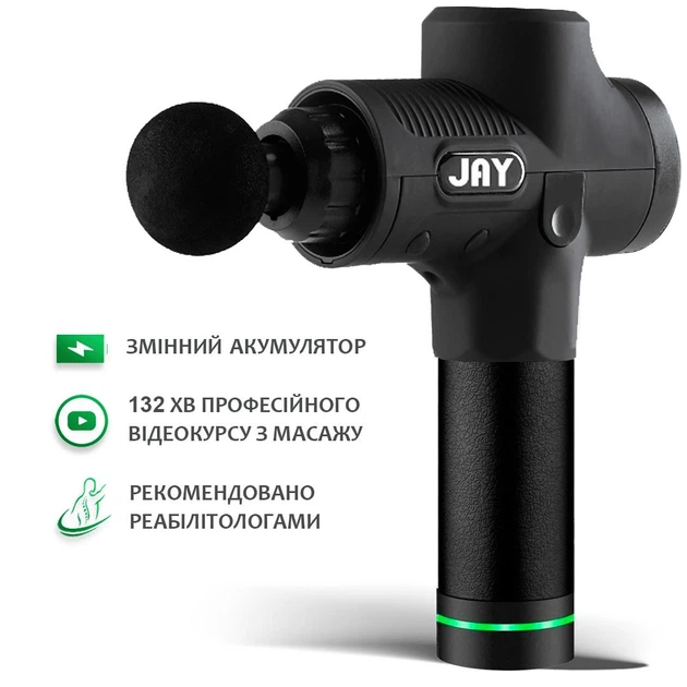 Професійний перкусійний масажер - масажний пістолет для тіла JAY Pro Чорний зі змінним акумулятором