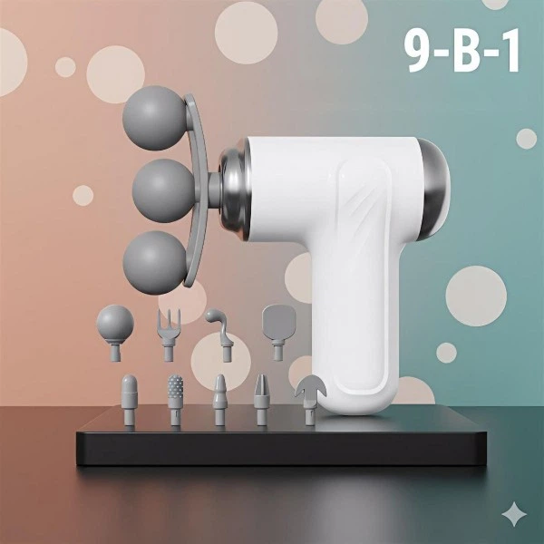 Портативний перкусійний масажер LM-130 для глибокого масажу з 9 насадками