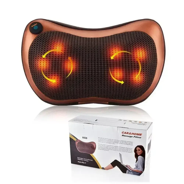 Роликовий масажер-подушка для шиї Massage pillow (8 РОЛИКІВ обертання в обидва боки) для дому та машини