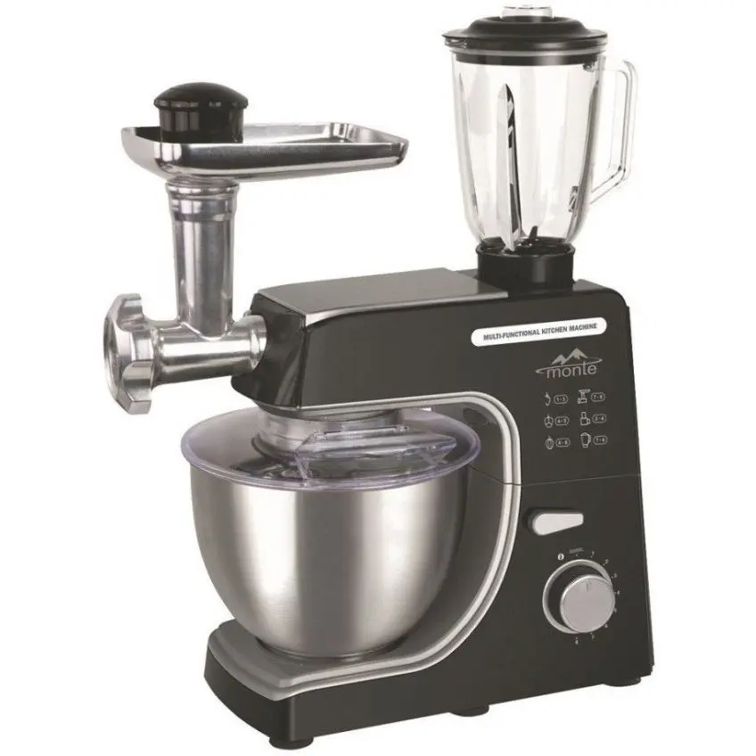 Потужність двигуна (max): 600 Вт Робота на змінному струмі(AC двигун) Плавний запуск двигуна Знімні частини придатні для миття у посудомийці 3D змішування відмінно перемішує і збиває інгредієнти Легке очищення Ручка регулювання швидкості Кількість швидкостей: 6 Автоматичне ругулювання швидкості залежно від бажаної суміші Насадки до кухонного комбайна: Гак для замісу тіста,
