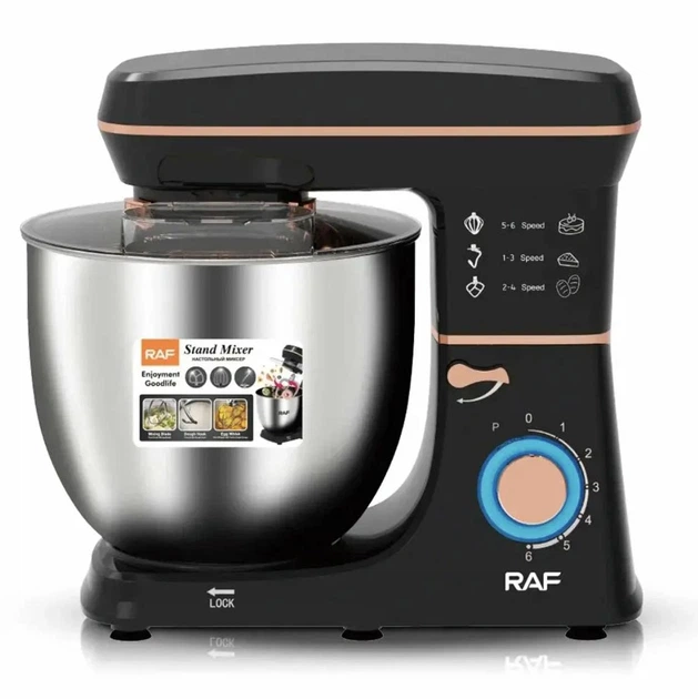 Кухонний комбайн 5в1 м'ясорубка, блендер та міксер 10 л 1400 Вт RAF R.6676B 6 швидкостей та 3 насадки з нержавіючої сталі