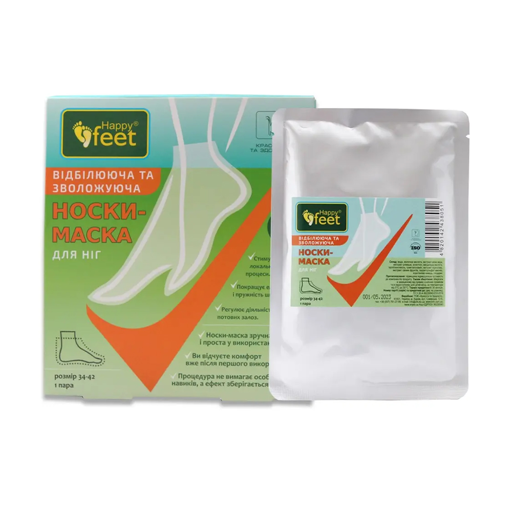 Шкарпетки-маска для ніг Happy Feet Відбілювальна та зволожувальна, 1 пара