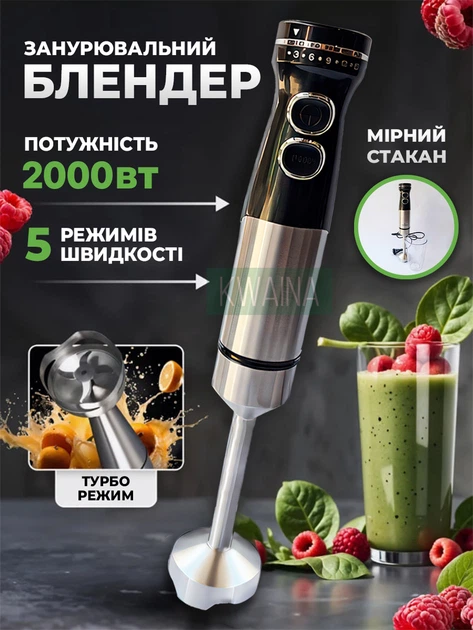 Занурювальний блендер на 2000Вт Ручний кухонний блендер-подрібнювач для дому, 5 режимів швидкості