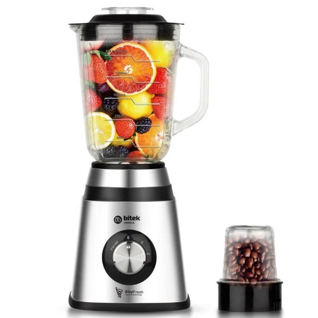 Стаціонарний блендер 500 Вт з чашею для смузі, пюре та коктейлів 1.5 л та подрібнювачем для кави та спецій 250 мл, чорний