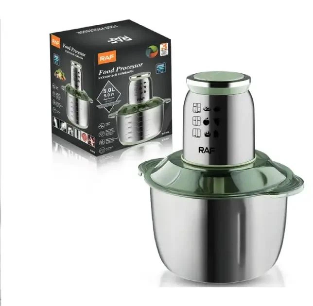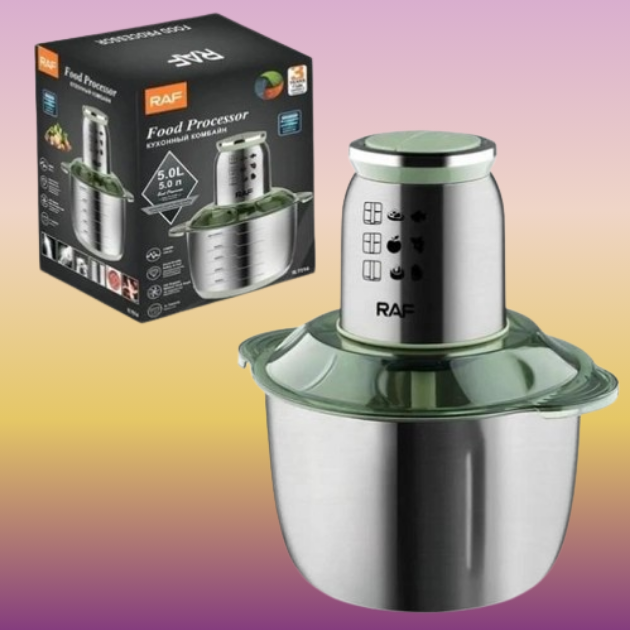 Подрібнювач електричний 1000 Вт 5л нержавіюча чаша 4 ножі Chopper RAF R 7014
