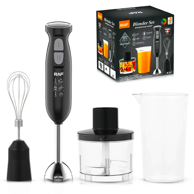 Блендер занурювальний 4в1 на 340 Вт, з чашею та винчиком, на металевій ніжці RАF P327 (L)