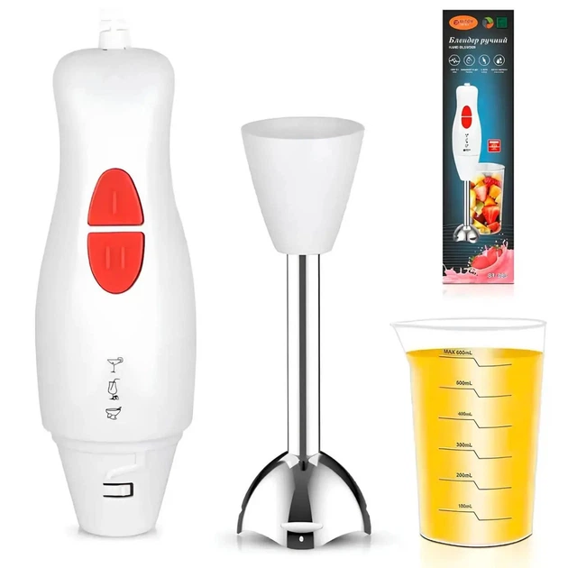 Ручний занурювальний блендер кухонний з чашею 600 мл Bitek BT-313B 1600 Вт білий
