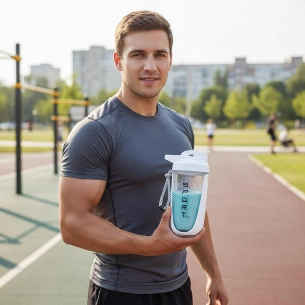 Шейкер SPORT 590 мл з антиковзким покриттям та дизайном білий