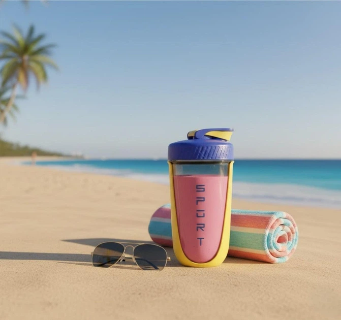 Шейкер SPORT 590 мл з антиковзким покриттям та дизайном рожевий