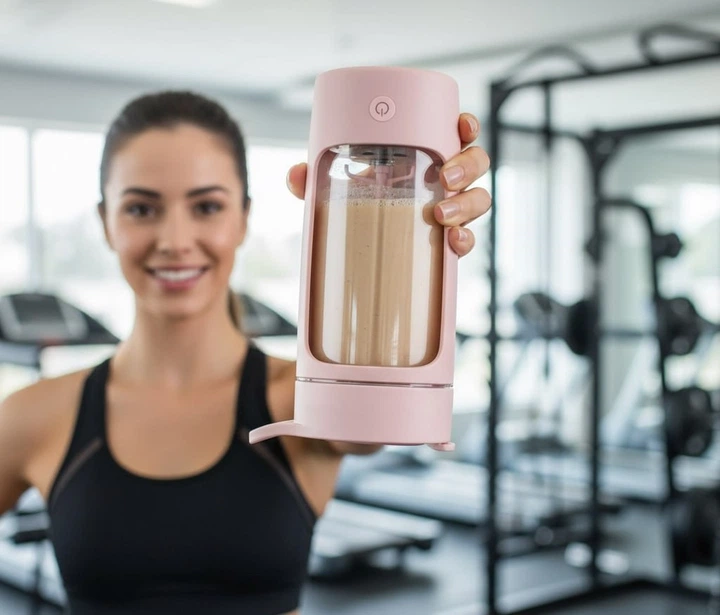 Електричний шейкер 650 мл із LED-підсвіткою та контейнером для суміші, рожевий