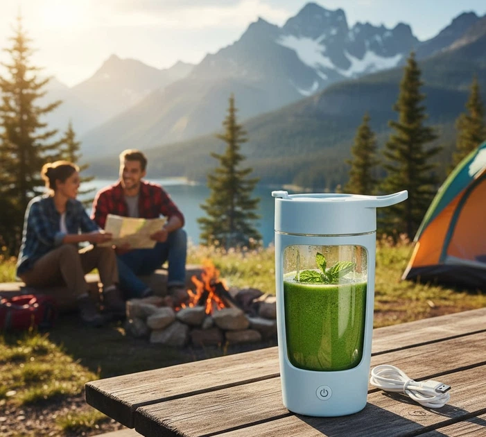 Електричний шейкер 650 мл із LED-підсвіткою та контейнером для суміші, синій