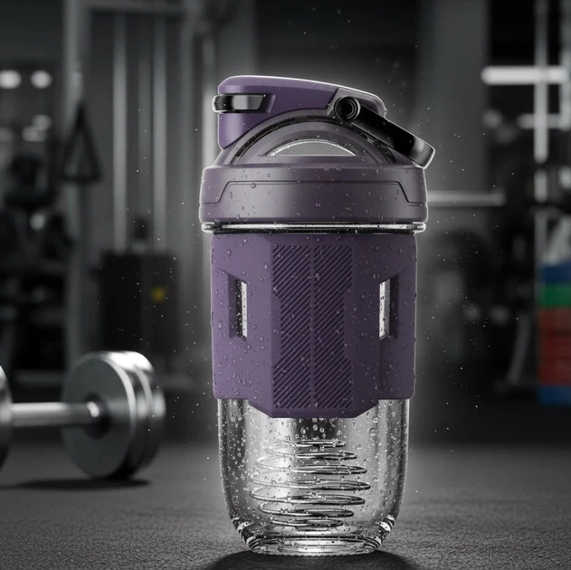 Якісний тритановий шейкер TKK 700мл для фітнесу. Фіолетовий