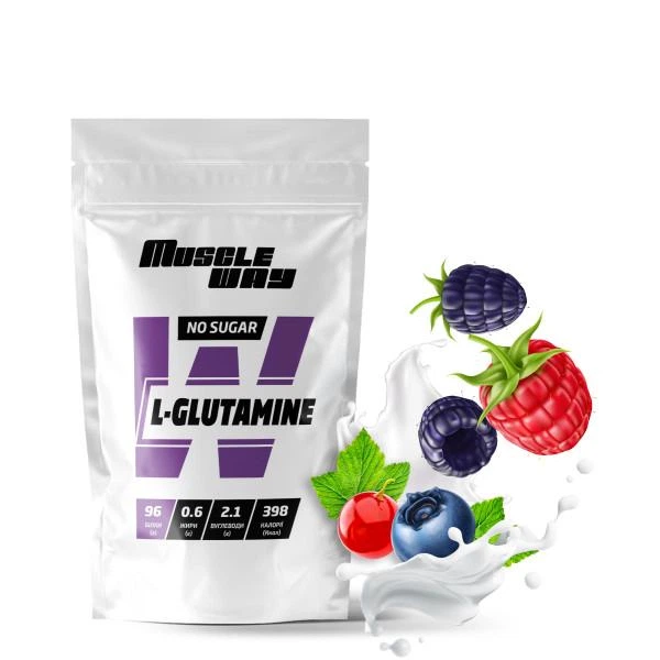 Амінокислота Л-Глютамін MuscleWay L-Glutamine 96 білків 20 порцій без цукру 100 г Лісова ягода (14-125-glu-mw-rs100-6)