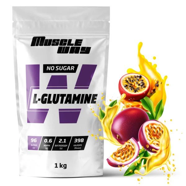 Амінокислота Л-Глютамін MuscleWay L-Glutamine 96 білків 200 порцій без цукру 1 кг Маракуйя (14-125-glu-mw-rs1-7)