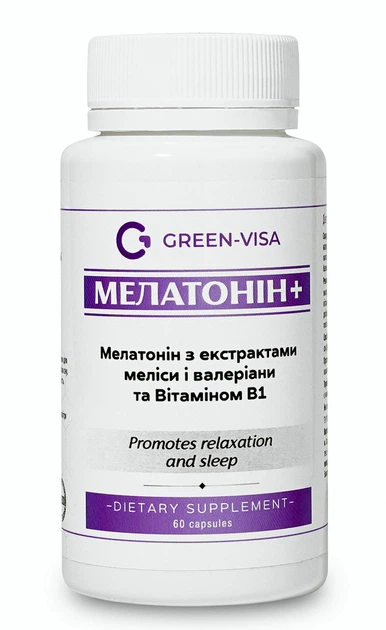 Мелатонін+ 60кап., безсоння та зниження якості та тривалості сну, Грін-Віза.
