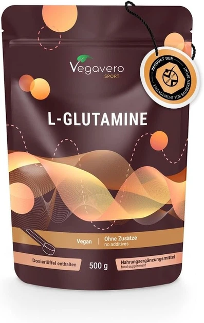 L-Глутамін 500 г, веганський, з ферментування, висока доза, L-Глутамін для відновлення м’язів, 100 порцій, виробництво Німеч
