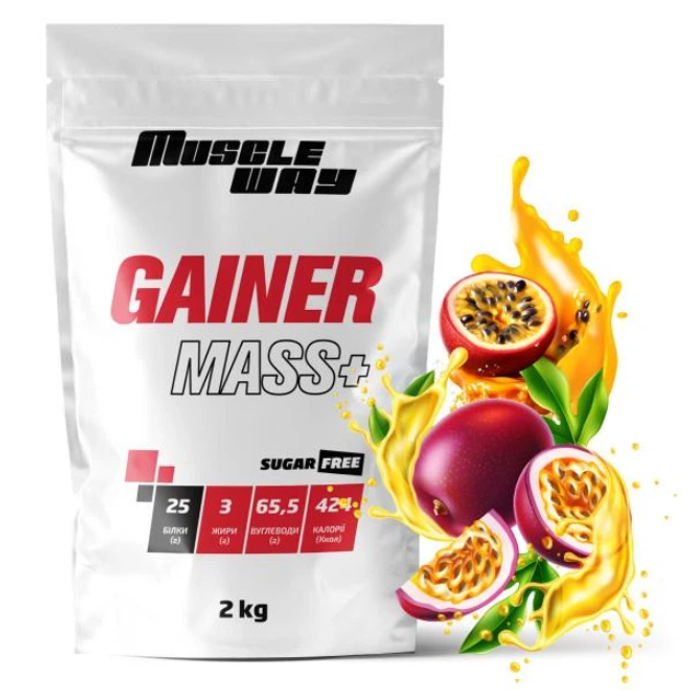 Вуглеводно-білковий гейнер MuscleWay GAINER MASS+ у порошку без цукру 2 кг Маракуйя (21-125-g-mw-rs2.m)