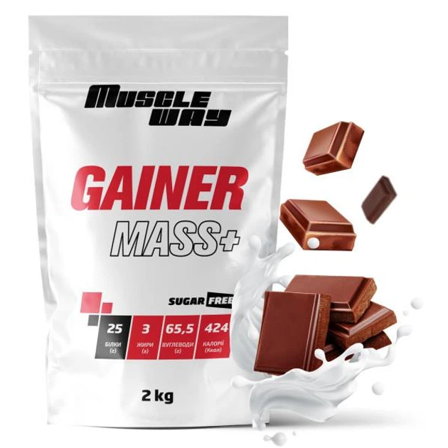 Вуглеводно-білковий гейнер MuscleWay GAINER MASS+ у порошку без цукру 2 кг Молочний шоколад (21-125-g-mw-rs2.msh)