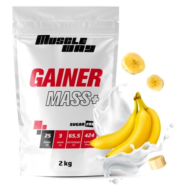 Вуглеводно-білковий гейнер MuscleWay GAINER MASS+ у порошку без цукру 2 кг Банан (21-125-g-mw-rs2.b)