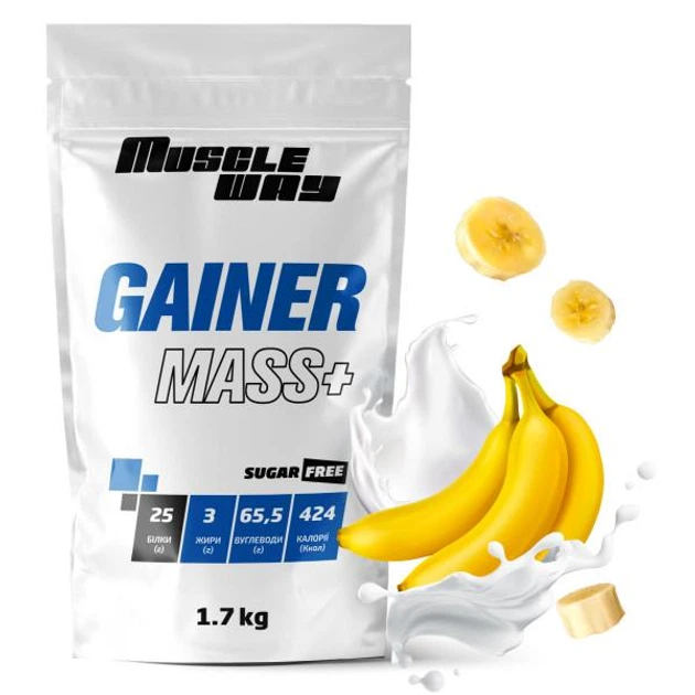Вуглеводно-білковий гейнер MuscleWay GAINER MASS+ у порошку без цукру 1.7 кг Банан (21-125-g-mw-rs1,7.b)