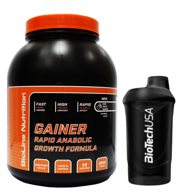 Гейнер BioLIne Nutrition 73 вуглеводи + 17 білок 3 кг збільшення маси тіла + набір м'язової маси + Шейкер