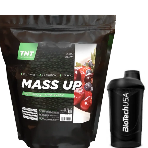 Вуглеводно-білковий гейнер Mass UP TNT Nutrition 2,5 кг для збільшення ваги та набору м'язової маси + шейкер