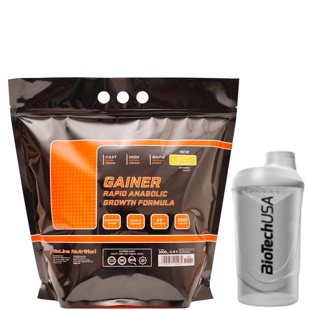 Gainer вуглеводно-білковий 73 + Growht formula Creatine 3 кг / упаковка Банан + Спортивний шейкер