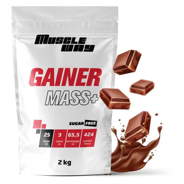 Гейнер вуглеводно-білковий MuscleWay Gainer Mass+ без цукру 2 кг Шоколад (14-125-g-mw-rs2-6)