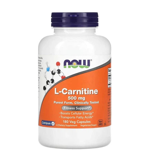 L-карнітин, L-Carnitine, Now Foods, 500 мг, 180 капсул (NOW-00073)