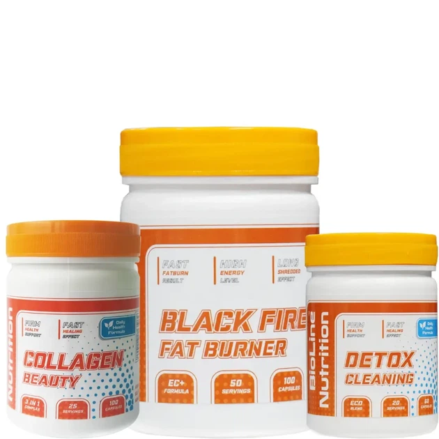 Капсули для швидкого схуднення + поліпшення шкіри та очищення організму : Black fire + Detox cleaning + Collagen